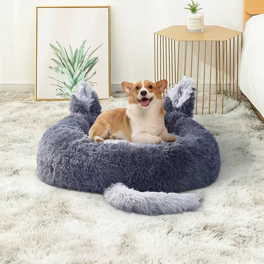 Dark Grey 70Cm round Plush Pet Dog Cat Bed with Cute Ears